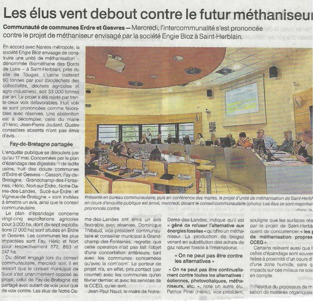 Nous autres, misérables Indrais et une partie des habitants des bourgs de Saint Herblain et de Roche Maurice, ceux qui devront supporter les nuisances du méthaniseur métropolitain durant 20 à 30 ans, avons donné un avis négatif. Pourtant, la messe est dite et la presse n’en parle pas.