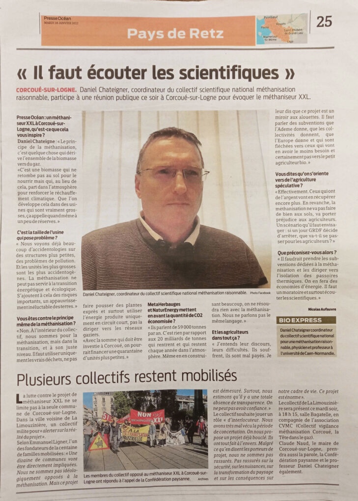 Quant au digestat que l’on répand finalement sur des terres cultivables, à Saint Mars du désert on sait de quoi on parle : « il va détruire toute la biodiversité des sols et rendre l’eau non consommable ».