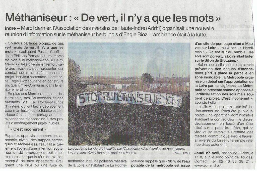 Plus d’une centaine de personnes à notre réunion d’information du 17 avril 2023, des représentants des communes voisines, Saint Herblain, Roche Maurice, Sautron … Malgré l’allocution du président Macron à la TV et le début des vacances scolaires, nous avons fait pratiquement salle comble. On a parlé du méthaniseur prévu à Saint Herblain sans langue de bois, comme prévu.