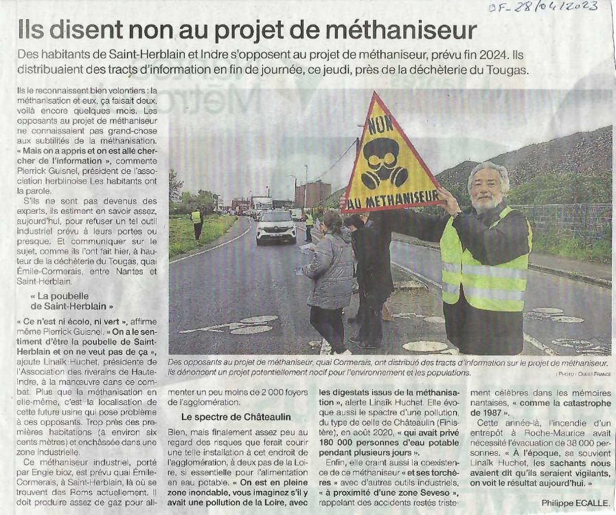 Mais il ne faut pas tarder car, si à St Mars du désert on se bat depuis deux ans contre un futur méthaniseur agricole, en ce qui concerne le très confidentiel méthaniseur urbain herblinois, dont nous avons appris l’existence, tout à fait par hasard, en fin d’année 2022, nous n’avons plus qu’un mois pour tenter de faire quelque chose, soit d’ici la fin de l’enquête publique prévue le 17 mai.